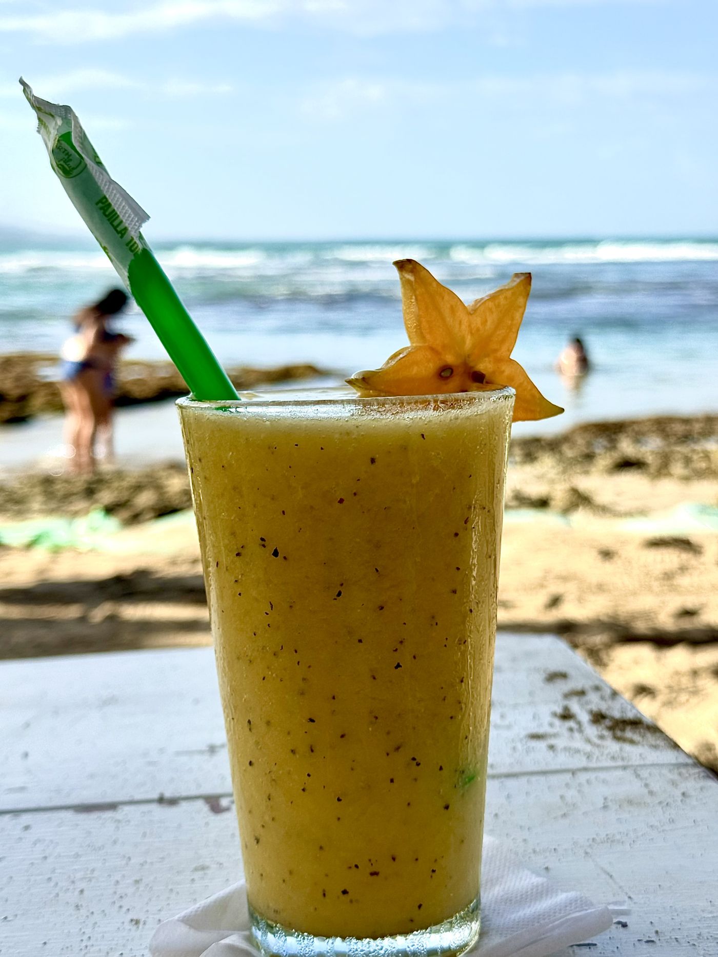 “Papaya.” And then, to my horror, she extended her glass toward me and said, “You can finish it if you want.”
